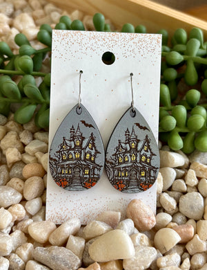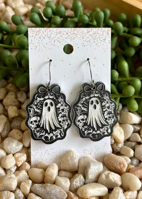 Pumpkin White/Brown Flowers Acrylic Dangles